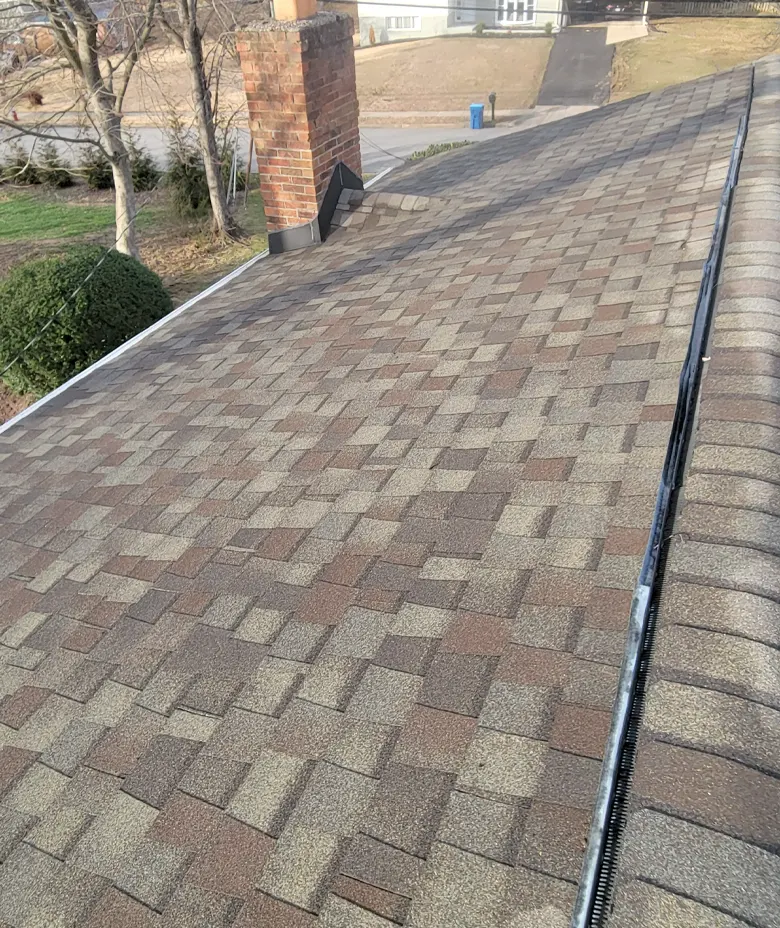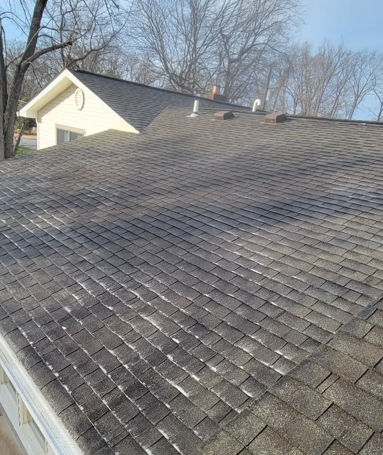 Instead, we use a specialized Soft Wash method. This safe, low-pressure technique eliminates moss, lichen, and algae at the root, restoring your roof’s look without risking damage to your home.