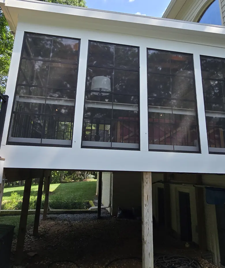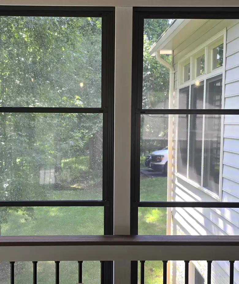 At KIWI WASHINGH, we use specific, manufacturer-recommended products designed exclusively for vinyl porch windows. We safely remove pollen, dust, and haze, restoring the clarity and flexibility of the material without risking damage to the soft surface.