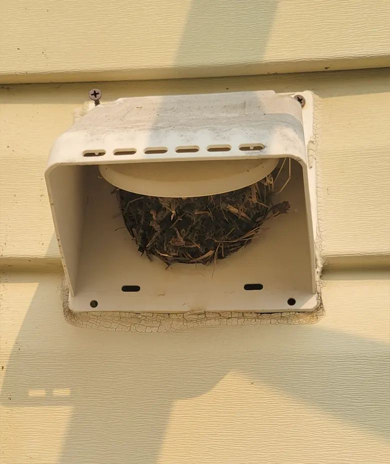 If you see visible lint hanging from your vent or birds gathering nearby, your dryer is struggling to breathe. A clogged exterior vent hood restricts airflow, forcing your machine to work harder and creating a serious fire hazard.